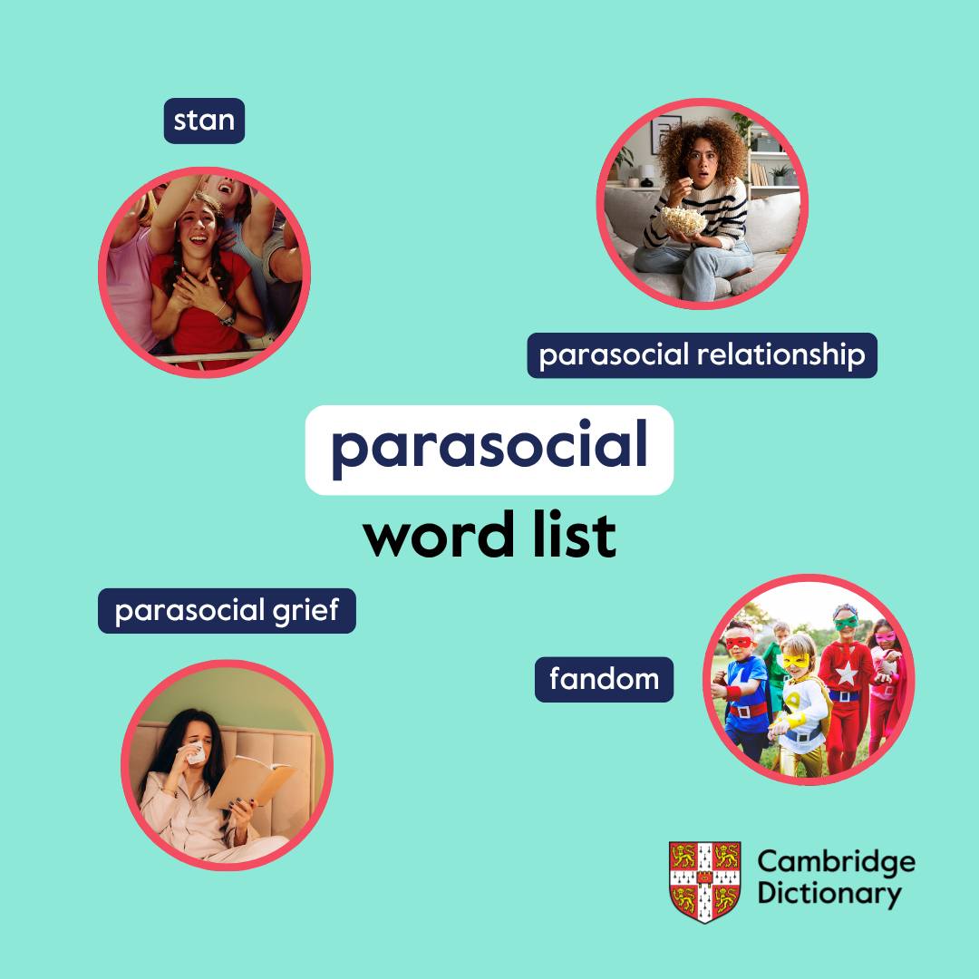 更早些时候的 11 月 19 日,剑桥词典公布了 2025 年度词,它们选出的是“parasocial”,翻译的话应该叫“准社交”。