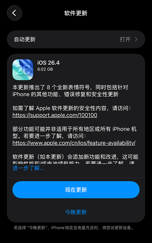 3 月 25 日早些时候,苹果推送了 iOS 26.4、iPadOS 26.4、macOS 26.4、tvOS 26.4、visionOS 26.4、watchOS 26.4 以及 iOS 18.7.7 和 iPadOS 18.7.7 版本更新。
