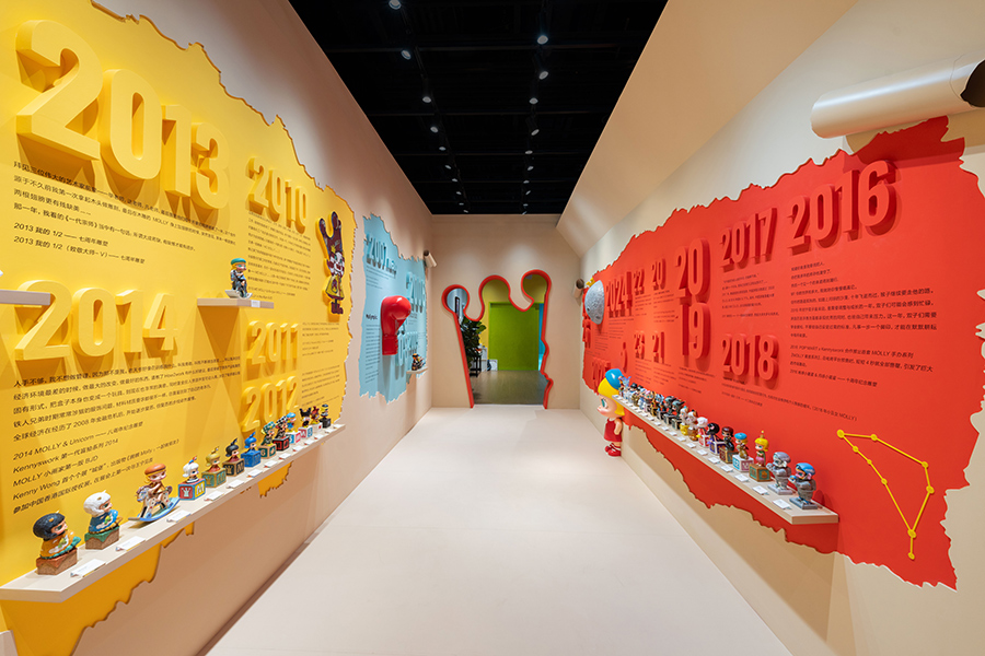 展览带来了“2006 - 2009 Hi, MOLLY”、“2010 - 2015 第二回合”、“2016 - 2026 绮妙的冒险”、“不变的星”、“‘我’和 MOLLY”、“沿途的风景”共六大主题展区,全面呈现了艺术家 Kenny Wong 关于 MOLLY 的人设草图、创作手稿、原画作品、经典公仔及创作背后的故事等资料。