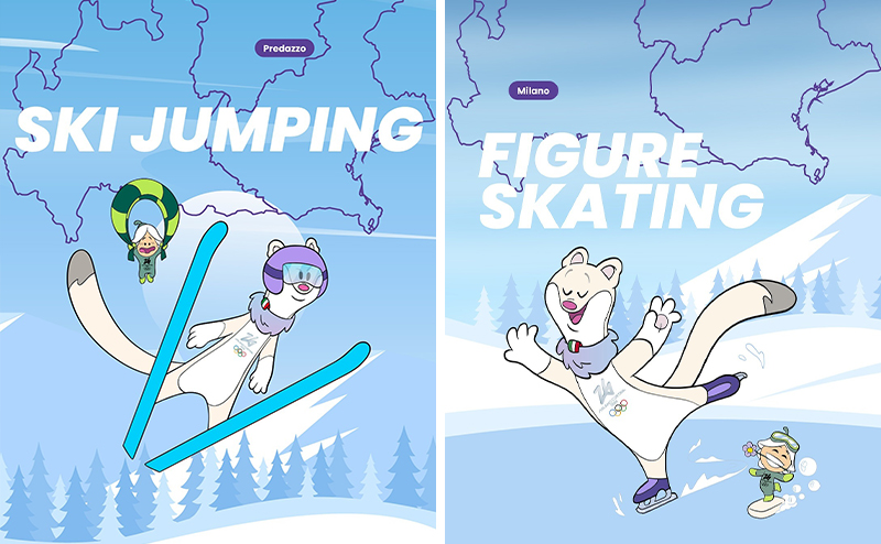 还有吉祥物。这个环节的设计是冬奥组委会和意大利教育部的合作,双方向意大利国内的中小学生发起了征集,随后共收到了 1600 多件投稿作品,其中两件作品被选入围,并进行了最后的公众投票。