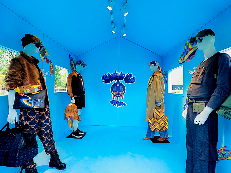 这次快闪是围绕 MCM 2025 秋冬系列展开的,也充分体现了 MCM 自由、探索和包容的精神。当中可以留意的是在木质小屋的 4 套造型,它们来自新一季新品,并融入了复古未来主义和创新视角;还有灵感源自孩童欢乐与宠物带来的陪伴的宠物友好型椅垫,它以耐用材质制作,并融入了 MCM 标志性 logo。另外还有 MCM 动物园香水,它的灵感来自 MCM 标志性的皮革动物玩偶。