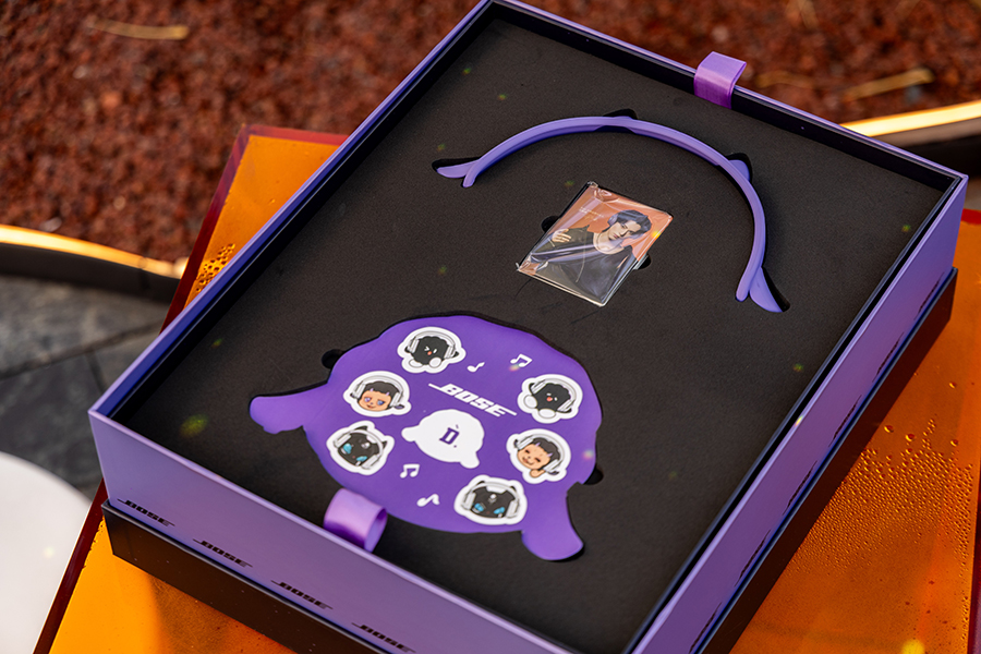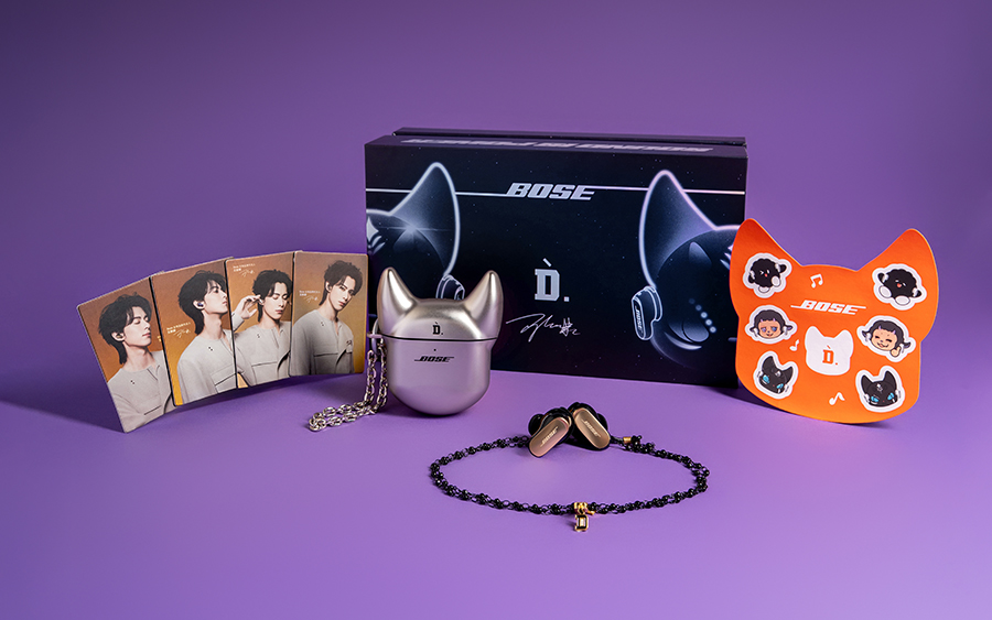 Bose 也由此推出了两款 Bose x 王鹤棣限量联名礼盒来助兴。它们分别以 QC 消噪耳机 Ultra II 和 QC 消噪耳塞 Ultra II 为主角,同时和王鹤棣个人品牌 D.DESIRABLE 做了碰撞,D.DESIRABLE 的原创 IP——D.FA.MILY 里的“小 D”和“小恶魔”形象出现在了产品的包装和各种附件上。