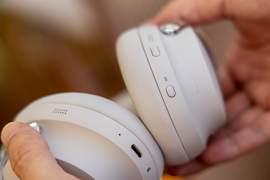 大体上 QC 消噪耳机 Ultra II 的使用和前代一样(或者说和所有类似的耳机产品一样),长按物理按键开机并配对,有 USB-C 口来充电,旁边有指示灯和 2.5mm 耳机孔(也赠送了 2.5mm 转 3.5mm 转接线),另一边耳罩上有多功能按钮和音量条(就是上面那一条凸起,可以以滑动触摸的方式调节音量大小)。