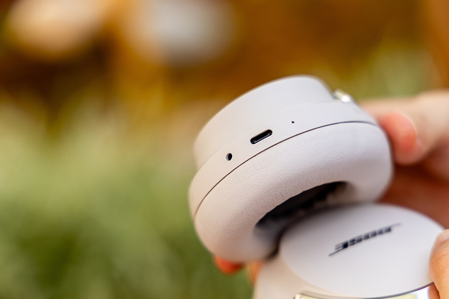 但 QC 消噪耳机 Ultra II 也和前代有很多不同,比如它的 USB-C 口已经不单单是用来充电了,它能进行有线连接来实现无损音频传输,并且不只是高保真音质,它其实也解决了大家对于无线耳机在延迟方面的担忧,像在手机端玩游戏时,如果实在不信任无线耳机的延迟,那么连有线就行了。