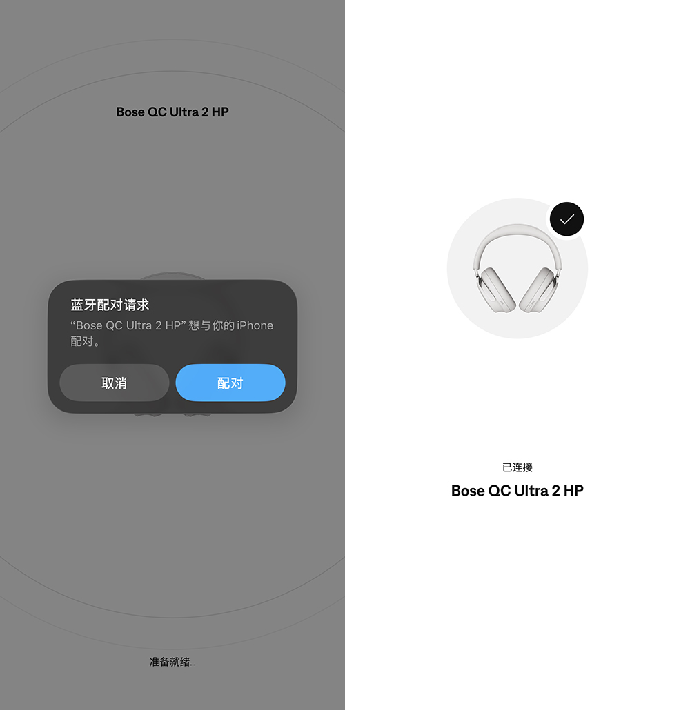 另一个不同是 QC 消噪耳机 Ultra II 新增了佩戴检测(似乎也在步步蚕食“苹果系”的优势),它的使用逻辑和“苹果系”稍有不同:长按电源键打开耳机,这时耳机并不会和设备连接,而是把它戴在头上后它才会连接(并有音效提醒),播放时把耳机摘下,它会暂停播放,但并不会马上断开连接(可能是判断用户或许只是暂时摘一下),直到将耳罩翻折平放,这时耳机才会和设备断开。