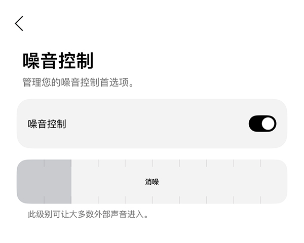 甚至“噪音控制”都还有多个档位可调,对于大家来说可操作空间很大(当然我们习惯性肯定是拉满,否则就换“感知外界”的通透模式了)。