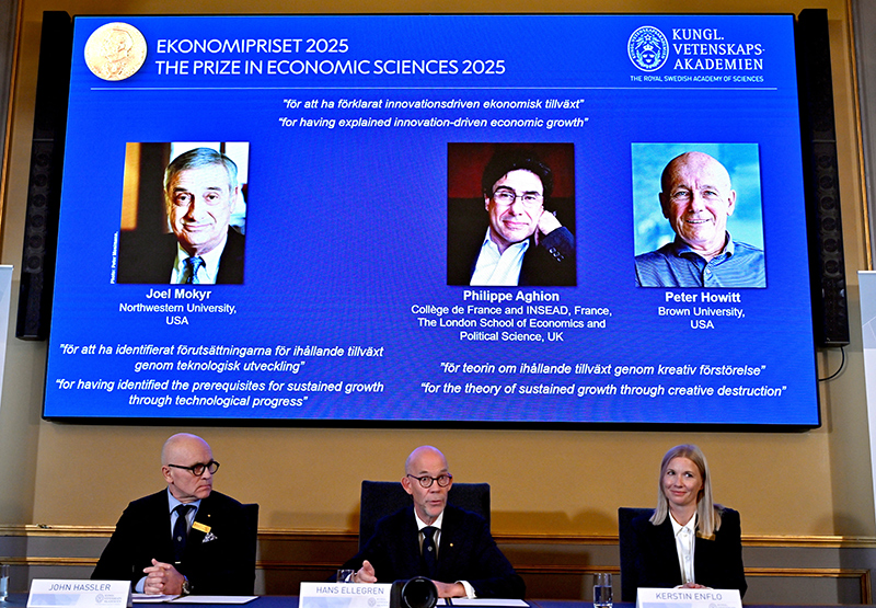 10 月 13 日下午 5 点 45 分,2025 诺贝尔奖的经济学奖正式揭晓,瑞典皇家科学院将今年奖项授予了乔尔·莫基尔(Joel Mokyr)、菲利普·阿吉翁(Philippe Aghion)和彼得·豪伊特(Peter Howitt)三位,以表彰他们“对创新驱动经济增长理论的阐释”(for having explained innovation-driven economic growth)。