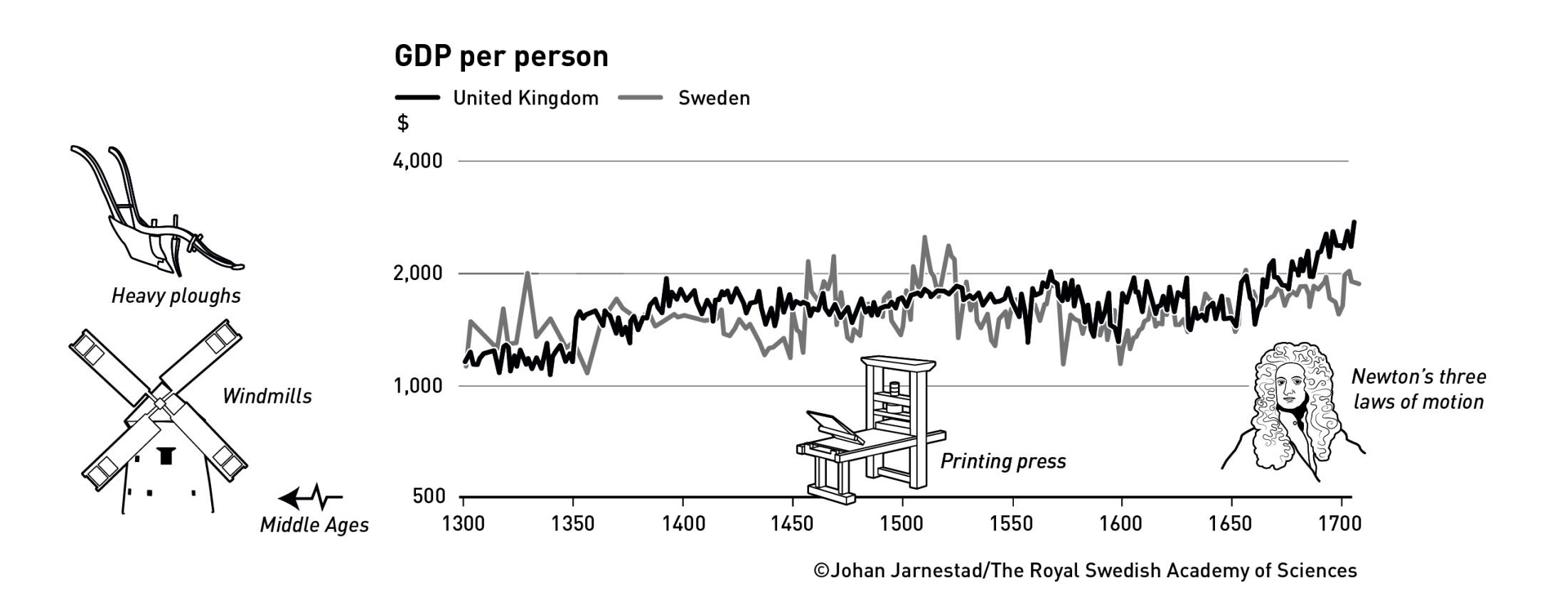 其中乔尔·莫基尔将获得一半奖金(今年诺奖奖金是 1100 万瑞典克朗,约合人民币 825 万元),他的获奖理由是“确定了通过技术进步实现持续增长的先决条件”(for having identified the prerequisites for sustained growth through technological progress)。