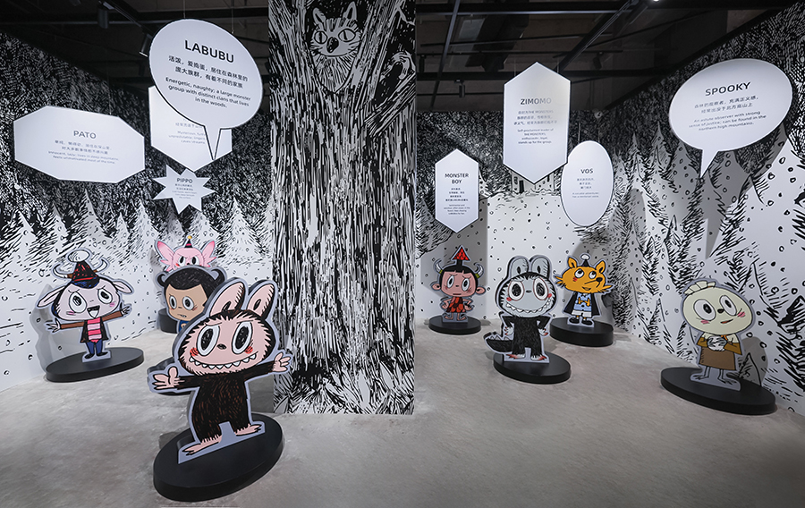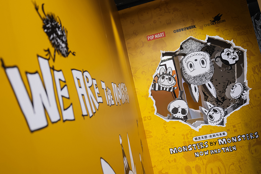 展览由 POP MART 泡泡玛特和 How2work 联合策划,以“MONSTERS BY MONSTERS: NOW AND THEN”(精灵天团:此刻与未来)为主题,全面回顾了 THE MONSTERS 从 2015 年诞生以来的 10 年发展历程。