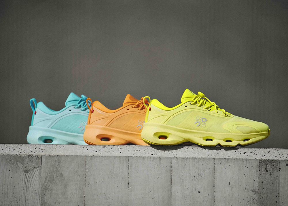 这次系列有两个品牌共同设计的 Cloudsolo,这一全新鞋型有着复古圆润的外形,半透明技术网眼材质鞋面装饰了双方联名标识,同时搭配可调速弹力鞋带。