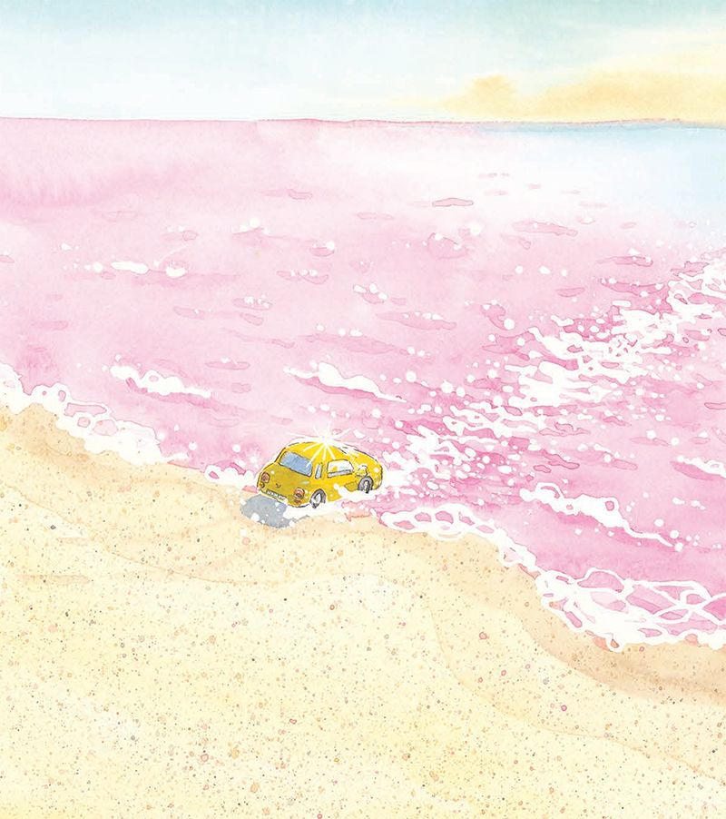 在韩国插画师金志安带来的《今天不上班,感觉很不错》里,也同样以大家习以为常、普普通通的上班作为开头,但在路上因为堵车,而选择走上了一条新路,才发现这条路通向美好的风景、美味的餐厅、漂亮的沙滩和梦幻的夕阳。