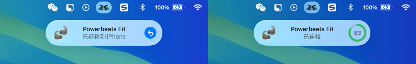 从整个使用过程看,Powerbeats Fit 已经完全“苹果味”,如果本身就是 iPhone 和 Mac 用户,用 Powerbeats Fit 和 AirPods 几乎没区别,非常习惯且自然。它内置 Apple H1 芯片,蓝牙连接好一个设备,其它同一 iCloud 账户的设备就自动完成配置,并会根据哪个设备正在播放而自动切换。