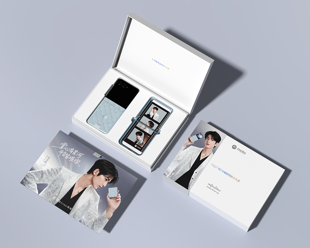 这次还有 moto razr 60 心动赫兹联名礼盒,当中除了有 12+512GB 的 moto razr 60 冰钻版手机,还有张凌赫独家写真透卡、定制款痛包等限定周边,它的定价是 4399 元。
