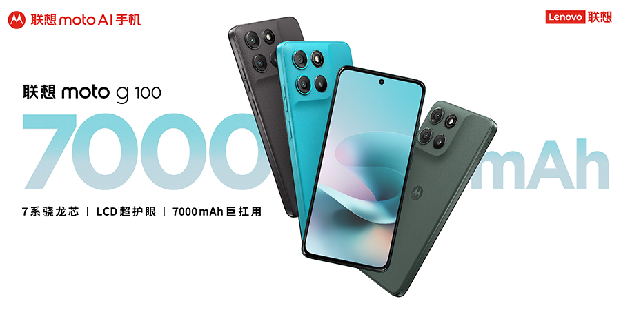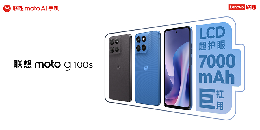 moto g100 AI 手机系列有 moto g100 AI 手机和 moto g100s AI 手机两款,它们都配备了 LCD 阳光护眼屏和 7000mAh 大电池。