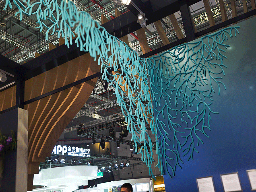 响应集团的环保主题,蒂芙尼将展区打造成了充满珊瑚礁的海底世界