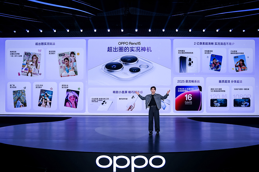 以系列定位的年轻人群体来说,“星光蝴蝶结”希望传递的是“系上蝴蝶结,点亮此刻星光”的情绪共鸣,Reno15 系列代言人宋雨琦(从 Reno13 系列开始,已经连续代言了三代产品了)在发布会现场亮相,也和产品设计一起展现出十足的生命力,饱满的元气也是当下年轻人的写照。