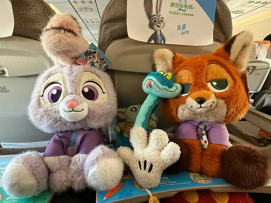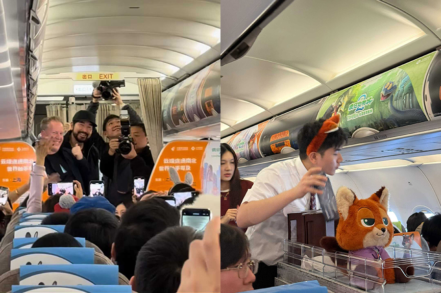 接下来在 11 月 20 日,《疯狂动物城 2》也做了北京首映礼,杰拉德·布什、费翔等都来到了北京,他们坐的这班东航 MU5161 成为了“疯狂动物城”主题航班的首航,也给乘客们带来了惊喜。