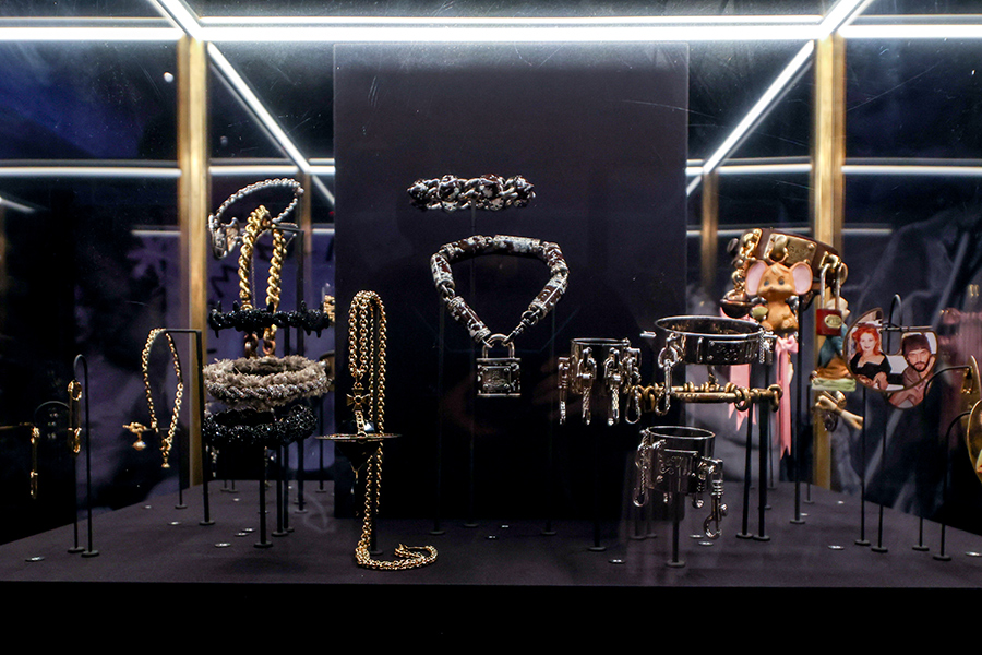 展览聚焦在珠宝创作上,也是 Vivienne Westwood 首次将近 40 年的典藏与秀场珠宝进行集中呈现,成都站延续了全球巡展的脉络,现场通过 8 大主题,串联起了品牌珠宝的设计历程、脉络与理念的演进,当中不仅有珠宝,也结合了声音、影像、装置、秀场造型等不同的媒介内容,以多种感官体验让大家走进 Vivienne Westwood 的世界。
