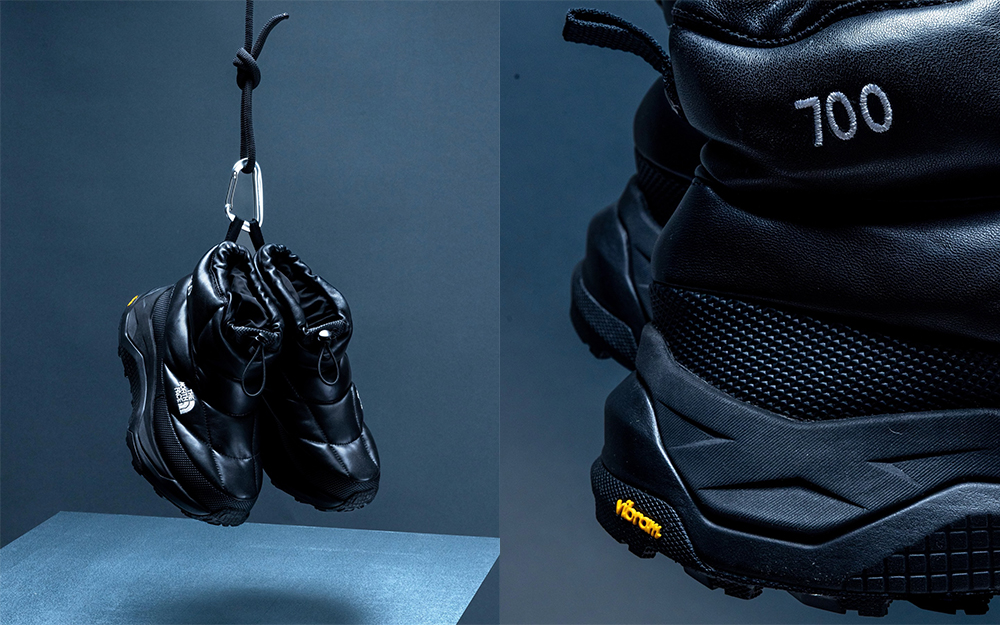 其中 Bootie Hybrid 的鞋面采用了羊皮材质,同时有 700 蓬松度的羽绒填充,加上可调节的松紧绳,能确保出色的保暖性。它搭载了 DREAM 缓震科技中底,搭配 Vibram XS Trek 外底,也确保了全地形的机能表现。