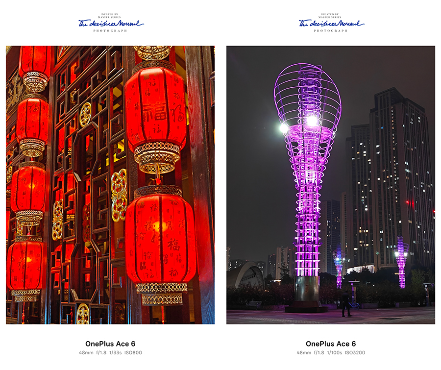 相对来说拍摄就不算是 Ace 6 的核心卖点了,它用了 1600 万像素前置镜头,后置是 5000 万像素广角和 800 万像素超广角双摄,两颗镜头分别照顾到等效焦距 16mm 和 24mm,广角端有两轴 OIS 防抖,后置支持到最高 4K/120fps 的视频拍摄。