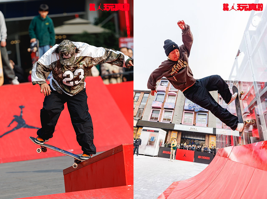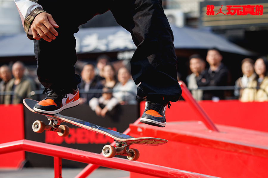 现场有 Jordan 品牌签约滑板运动员小黑,以及来自全国和成都本地的众多滑板好手集结上板,在街头风格的专属场地中挑战高难度动作。