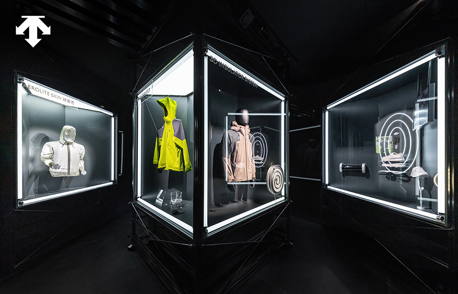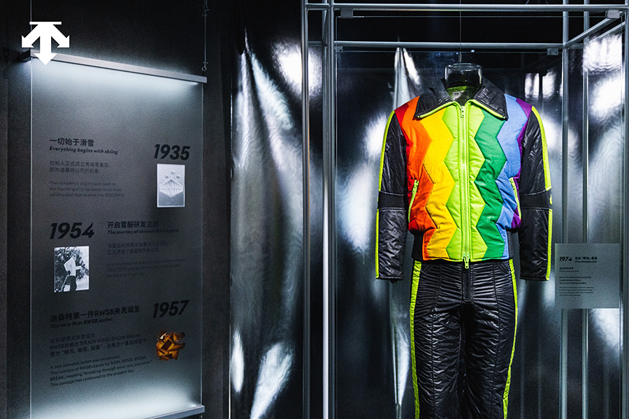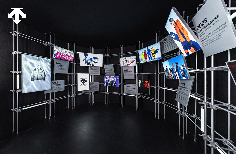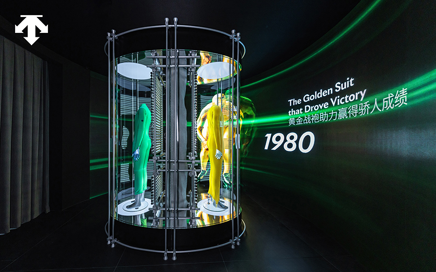 我们曾在今年 8 月底去看过展览的上海站,当时是展览首展。1935 年创立的迪桑特在至今已经 90 年的历程里一直以“精工造艺”为核心理念,持续地在高端专业运动装备领域不断研发和进化,展览就是以“一切始于滑雪”的品牌基因切入,以沉浸式空间展示了品牌在滑雪、铁人三项和高尔夫三大专业运动领域的发展脉络。