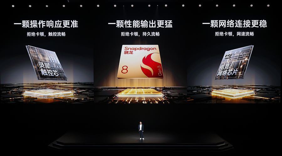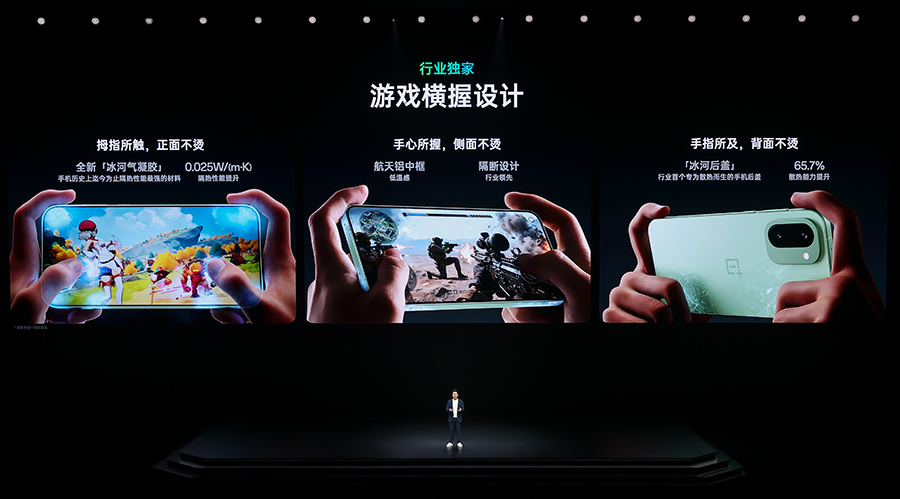 Ace 6T 也延续了一加的“电竞三芯”概念,除了处理器,还有电竞网络芯片 G2 及灵犀触控芯片,实现了 Android 阵营下的首批“触显同步”(Ace 6 这些也有),同时有“冰河散热系统”确保性能稳定输出,以及有“游戏横卧设计”能提升操作时手上实际的感受,“久玩不烫手”。