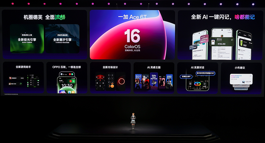Ace 6T 也搭载了 ColorOS 16,除了流畅,系统有 AI 的深度融入,“AI 一键闪记”、游戏时有 AI 提供辅助等都足够实用,而和苹果阵营跨生态联动的“OPPO 互联”也继续提供。