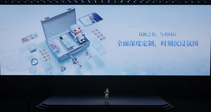 这次发布会上一加还官宣了和《原神》的合作,现场发布了 Ace 6T 原神神里绫华定制机,它以神里绫华为灵感,在手机外观及专属珍藏礼盒、专属系统主题等各环节进行了全链路深度定制。