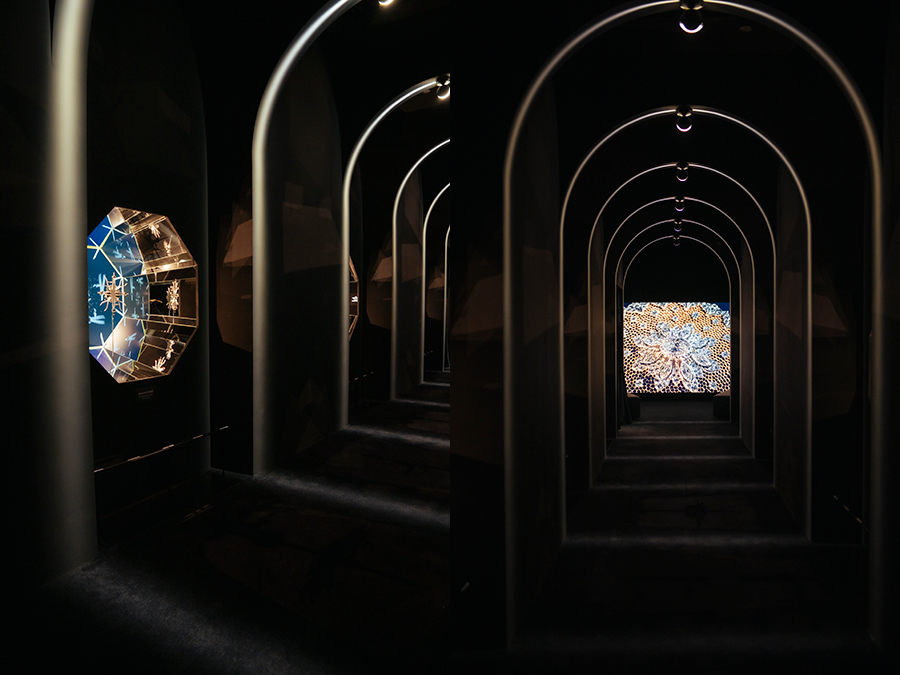 展览由 Alba Cappellieri 担任策展人,base 在米兰的活动策划团队 Balich Wonder Studio 负责创意构思和制作执行,现场以“世代传承”、“自然秘境”、“匠艺之界”和“典藏长廊”4 个空间,呈现了 Buccellati 从 1919 年创立至今代表性的 150 件珠宝和 100 件银器,让大家通过这 250 件作品来沉浸式感受 Buccellati 独特的历史底蕴与创意脉络。