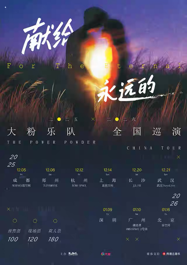 周日晚可以在新歌空间看大粉乐队的现场,来给这一周收个尾。即便你不太确定知道大粉乐队,但很可能你是听过他们的歌的。成立 10 多年,乐队带来过多张专辑和多首热单,而现在听起来,也还是保持了刚出发时的那股劲儿。