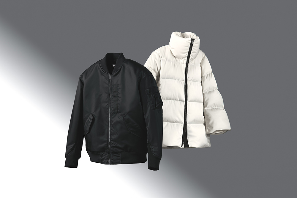 首先是两款适合冬日的外套单品。其中云朵蓬松羽绒在当年就是 +J 系列口碑最好的单品之一,它采用了具有建筑廓形感的 A 型设计,再搭配上立体蓬松的云朵领——这种大廓形看似极简,但要实现动态下的 360 度无死角的完美轮廓,其实非常考验剪裁。