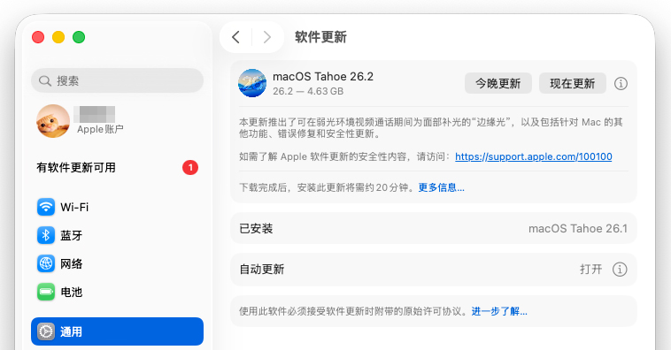 其中 iOS 26.2 为音乐、播客、游戏 app 带来了增强功能,macOS Tahoe 26.2 在 FaceTime 等应用下带来了屏幕补光功能。此外就是各个系统的错误修复和安全性更新了。