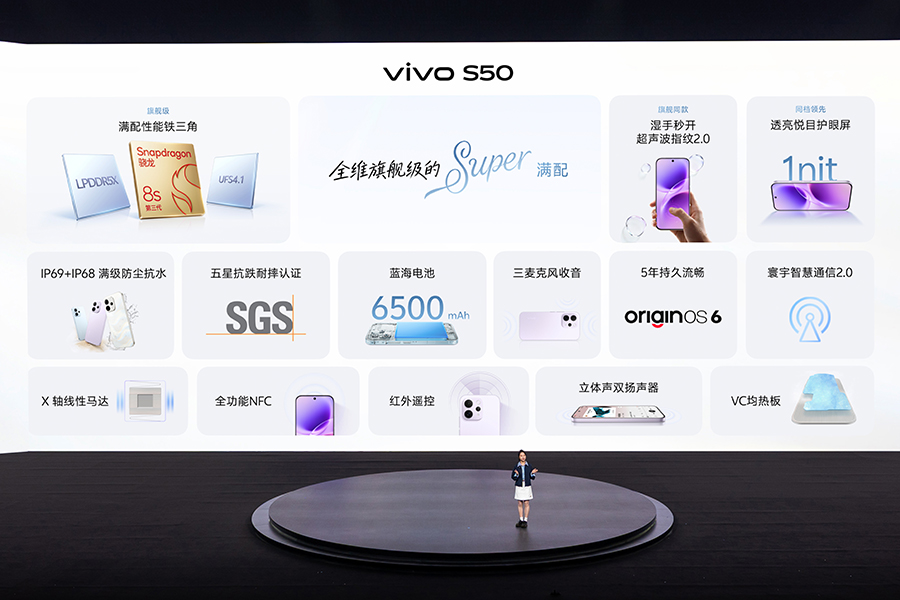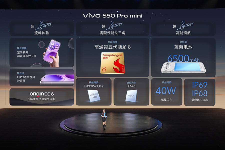 性能方面,S50 搭载的是高通第三代骁龙 8s,S50 Pro mini 更是首批搭载了第五代骁龙 8,同时有 LPDDR5X Ultra + UFS 4.1 的组合,加上 S50 系列还全系配备大面积高性能导热石墨与高效 VC 液冷散热,确保性能持续稳定输出,满足多任务处理和重度游戏的需求。