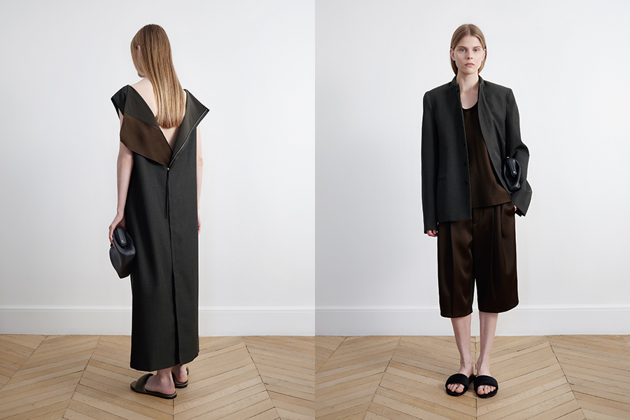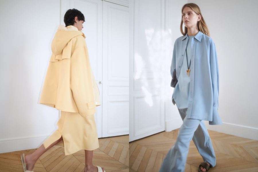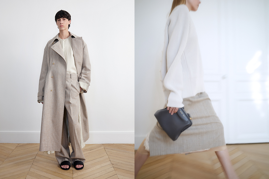 整个系列有着精致的用色,从西装黑、焦土褐到白色与奶油色,中间点缀了宝石红、清水蓝、芍药粉、雏菊黄,并以燕麦、赭石、棕褐及内衣色调为基底。