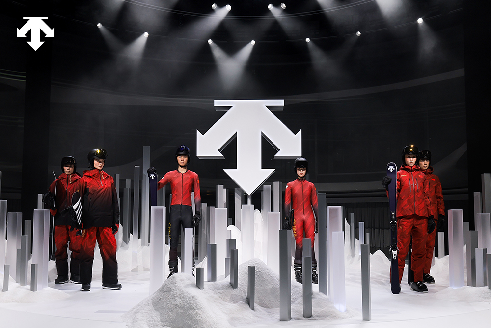 开场表演后,现场举行了国家队队服交接仪式。迪桑特在 2023 年成为中国国家高山滑雪队及中国国家单板滑雪 U 型场地队的合作伙伴,这次在现场,迪桑特正式发布了为中国国家高山滑雪队专门打造的全新队服。