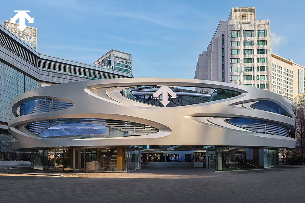 迪桑特利用了建筑本身的环形结构,并以莫比乌斯环为灵感,将这里打造成了一座“未来之城”。建筑外立面带有太空时代美学风格,整体充满科幻感,如同一艘宇宙飞船。