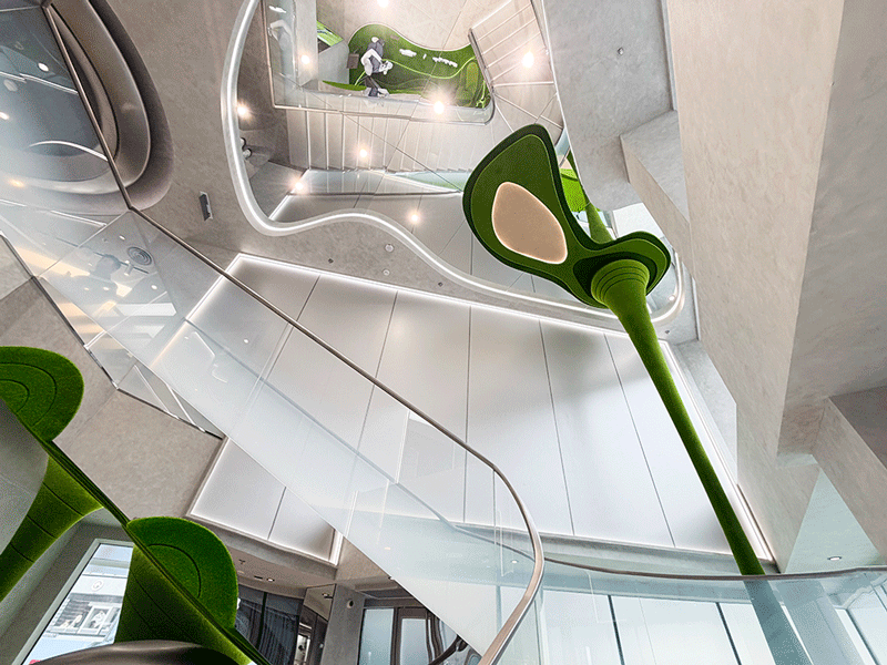 高尔夫球作为迪桑特扎根的另一重要领域,也在“未来之城”拥有自己独立的主题空间,围绕旋转楼梯有以果岭为主打元素的特殊装置。