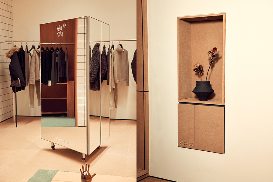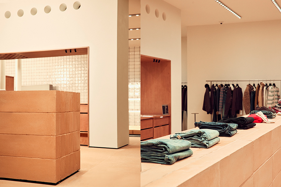 alright then 最终选在成都,并以“撇脱空间”的概念来打造自己的空间,四川话中“撇脱”代表着洒脱、随性和自由自在,在这 300 平方米的空间里,alright then 也建构了一个松弛的都市女性衣橱——店铺整体以灰粉为主色调,同时大量使用了砖材和木质结构,这带来了属于自然的肌理感,也让身在其中的人们有着非常舒适的视觉感受。