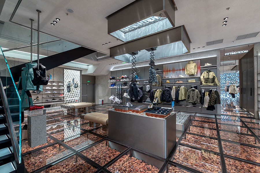 另一家刚开业的重要门店就是 Salomon 的成都太古里店了。本身 2022 年底 Salomon 就在成都太古里开了店,但现在看来那间单层店铺就有些“迷你”了,尤其过去三年 Salomon 成长迅速,扩店已经势在必行,现在的新店离“老店”不远,已经是两层空间,面积超过了 500 平方米。