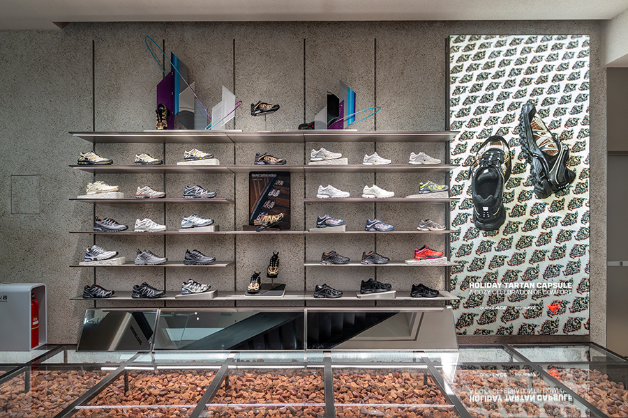 整间店铺以“大地、竹林、宇宙”的概念设计,当中带来了品牌的全系产品,有本月刚刚推出的 ACS PRO 20 周年纪念款,也有和 Slam Jam 的联名系列,还有韩国线。此外店内还准备了足部测量服务,这是 Salomon 在成都首次提供这项服务。同时随着新店开业,Salomon 还在店外打造了“心响事成”主题茶铺,这会持续到 2026 年的 1 月 1 日。