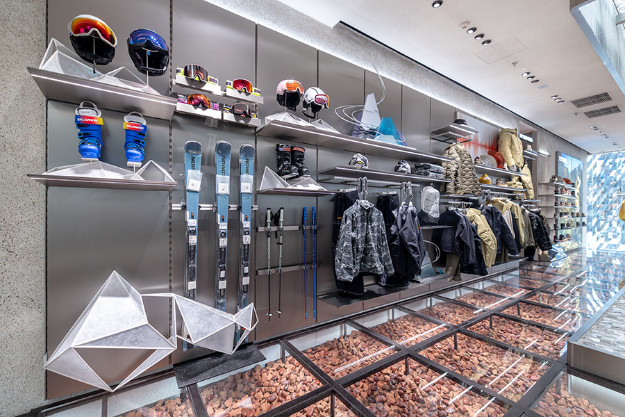 店铺在 12 月 25 日圣诞节这天正式开业,我们此前也带来了完整的探店内容,这间店铺的全称最终定为“全球首家滑雪加越野跑旗舰店”,是“全球”和“首家”,也是“旗舰店”,同时体现了“滑雪”和“越野跑”的两大核心品类——这属于 Salomon 的品牌 DNA,也是 Salomon 接下来将重点主推的两大品类,新店的重要性可见一斑。