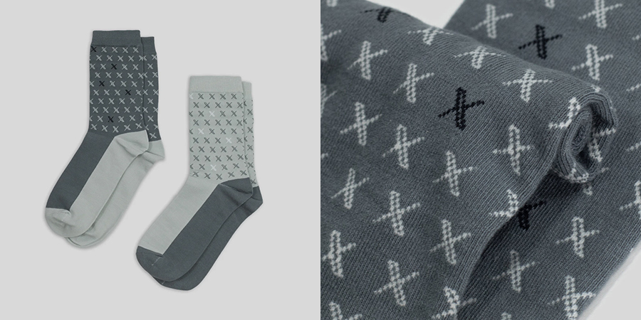 同时也还是再补了几款 X 主题的单品,像是圆领卫衣、毛线帽子和袜子,设计上都是主打 X 的 logo,价格分别是 65、30 和 25 美元(约合人民币 460、210 和 180 元)。这次是一水的黑色,只有袜子是两种灰色拼接,再将 X logo 重复排列作为 Monogram 图案来用,也不难看。