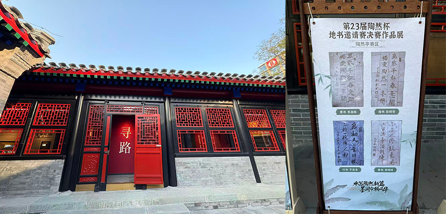 这一次街区举办的是第 23 届陶然杯地书大赛,展出的是居民们在地上用水写出的书法作品,饶有生活的趣味。