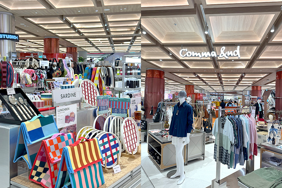 而业态分布用的是“MALL + BLOCK”的混合方式,各楼层的功能都写得很明白:负一层是美食广场;一层以超市和快闪市集承接人流;二层聚焦美妆集合与都市轻奢;三层以百货品牌和买手空间 comma &nd 做视觉中心;四层是潮流运动;五层和六层则慢慢转向生活方式与餐饮。