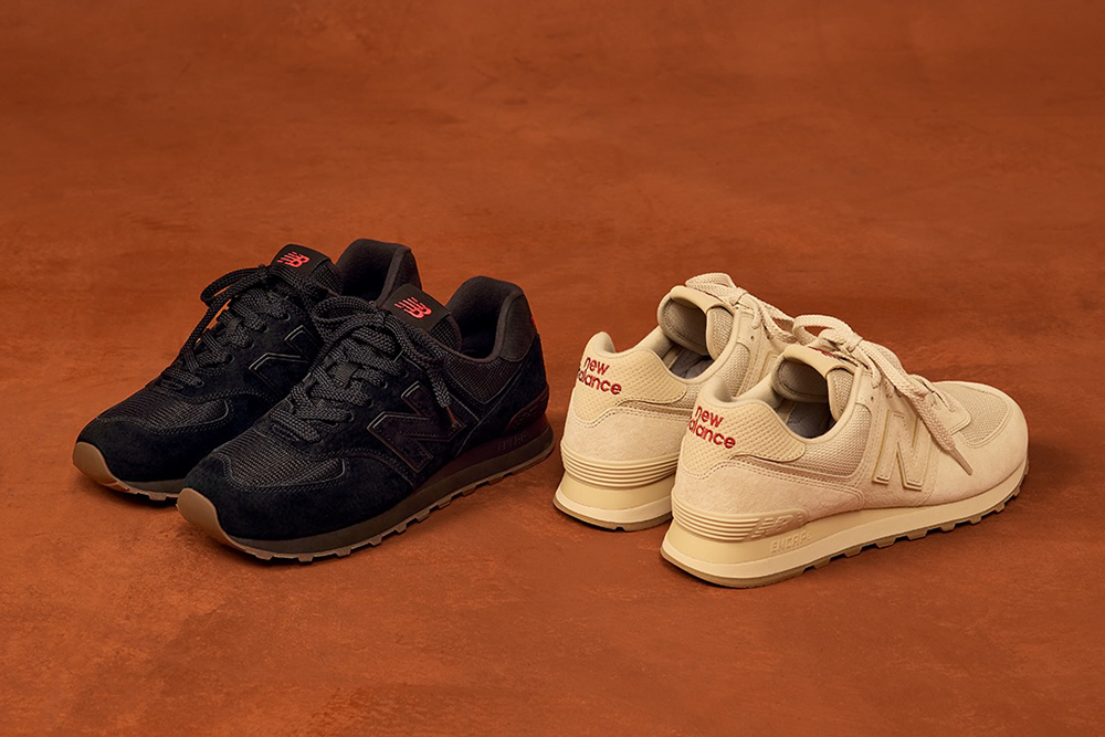 另外还有米色和黑色两款 574,它们都采用纯色调,并大面积使用了复古的麂皮材质,而鞋舌和后跟的 logo 则都换成了红色。