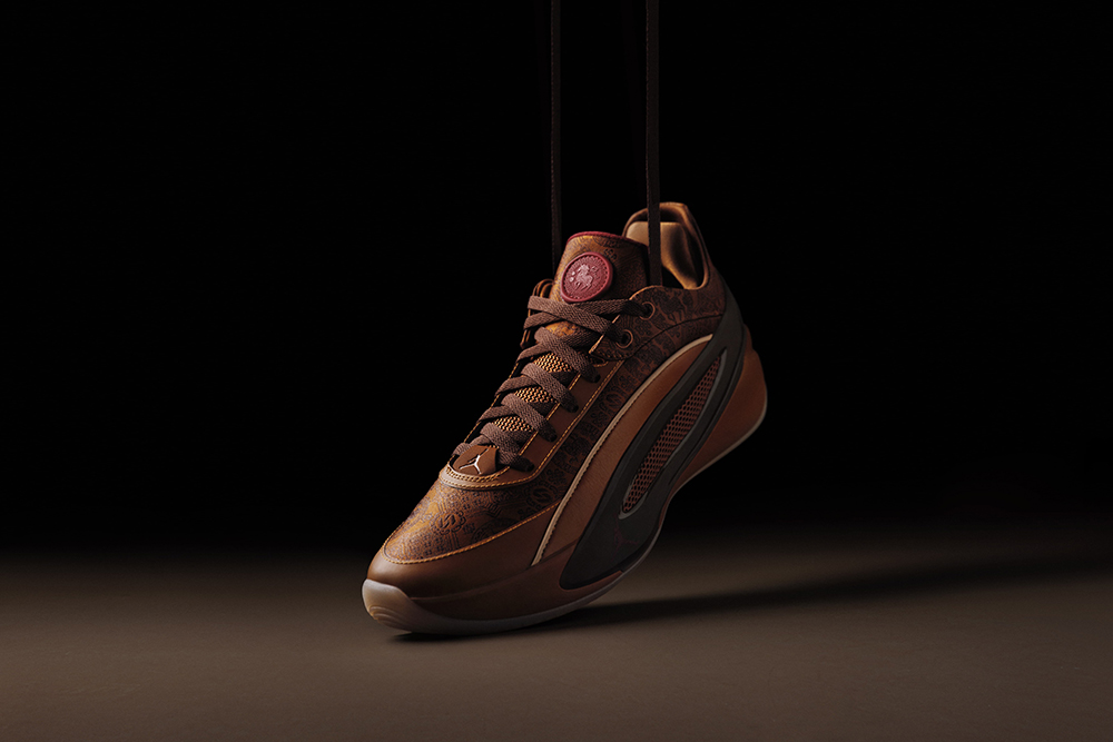 Jordan 也为卢卡·东契奇的最新款签名鞋 LUKA 5 打造了 CNY 配色,鞋款整体以棕色调呈现,鞋面细密地铺满了中式花纹,鞋舌还点缀有印章设计。