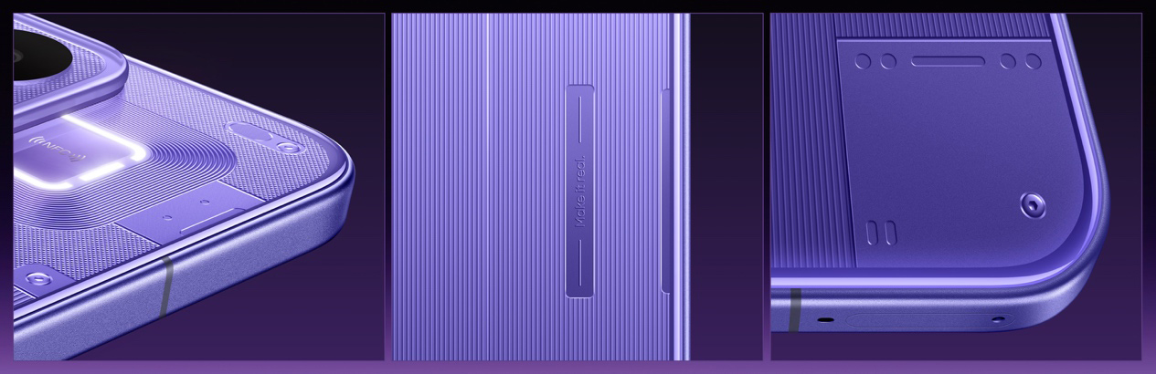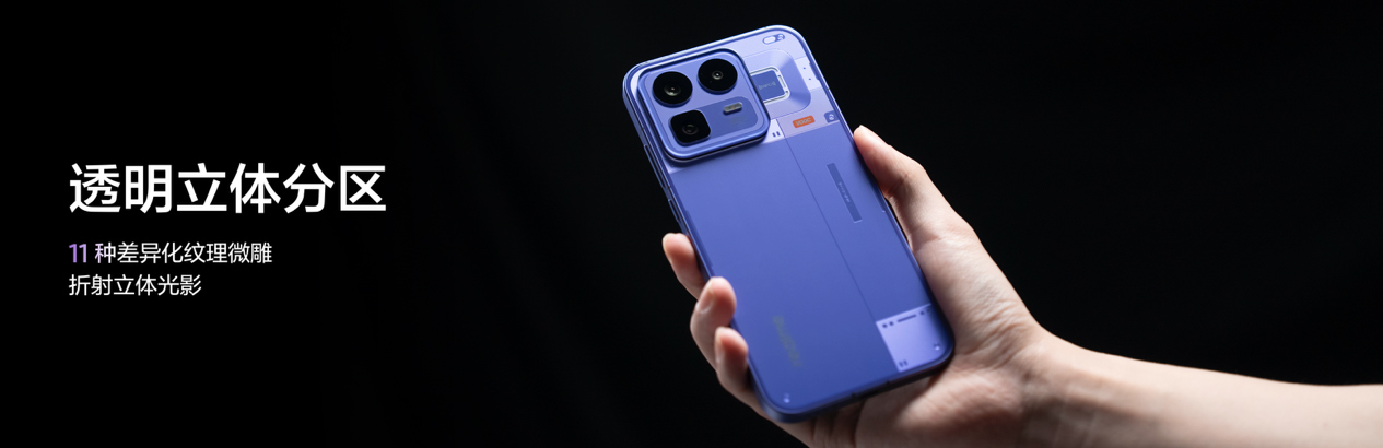 Neo8 延续了 realme 的 Neo 系列“潮玩电竞旗舰”的定位,它强调了完善的配置和一系列行业首发或“唯一”。外观方面它有“赛博紫”、“起源白”和“机甲灰”3 款配色,有全系标配磨砂金属中框搭配大 R 角设计,这能带来舒适的握持手感,而 IP66/68/69 防水也让 Neo8 即便在 2 米水深下也能 72 小时不进水。