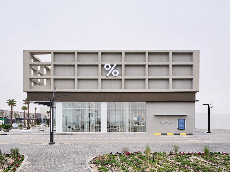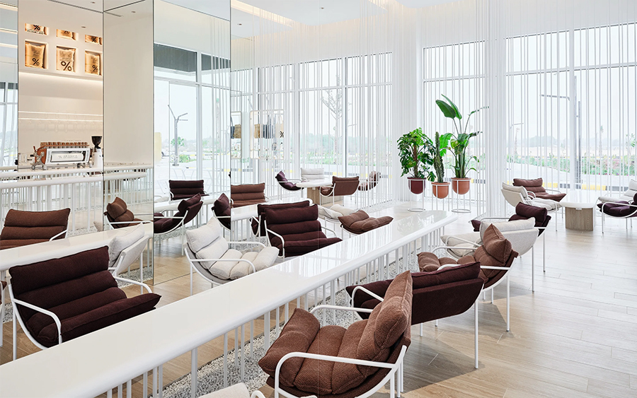 2025 年 12 月 19 日,% ARABICA 在科威特杰赫拉省 Mutlaa Al Jahra Mall 开出新店,店铺由日本设计团队 no.10 操刀,这是一家“得来速”店(Drive Thru),但又做了包括大面积玻璃幕墙在内的室内空间,将室内和户外开阔的视野融为一体。
