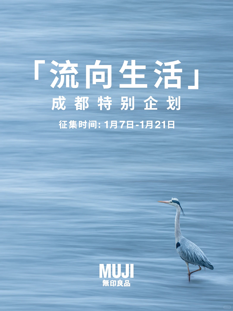 多说两句:1 月 7 - 21 日,MUJI 还发起了主题为“流向生活”的成都特别企划影像征集活动,邀请市民通过“视觉成都”网站和 MUJI 的小红书官方账号来记录并分享体现成都生活特色的影像作品,这些作品包括了市集、公园、茶馆、街巷等生活中的美好瞬间。